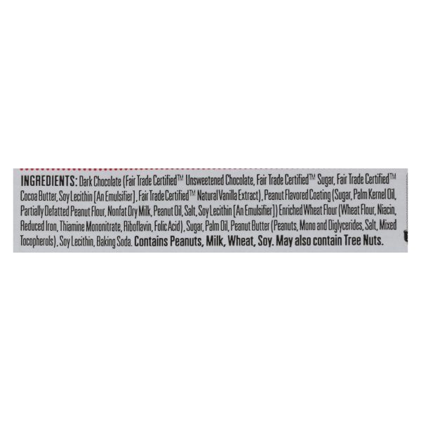ingredients : dark chocolate;fair trade certified™ unsweetened chocolate;fair trade certified™ sugar;fair trade certified™ cocoa butter;butterfat;milk;sunflower lecithin;palm oil;peanut butter;wheat flour;whey milk powder;salt;vanilla extract;baking soda