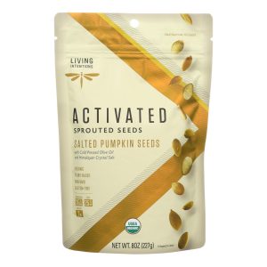Living intentions activated salted pumpkin seeds with cold-pressed olive oil and himalayan crystal salt are a nutritious and wholesome superfood. A great between-meal snack, these activated sprouted seeds are a gluten-free and non-gmo product. Certified organic by the usda, our salted pumpkin seeds are a natural plant-based food seasoned with olive oil and sea salt. We package these delicious seeds in an 8 oz. Bag.