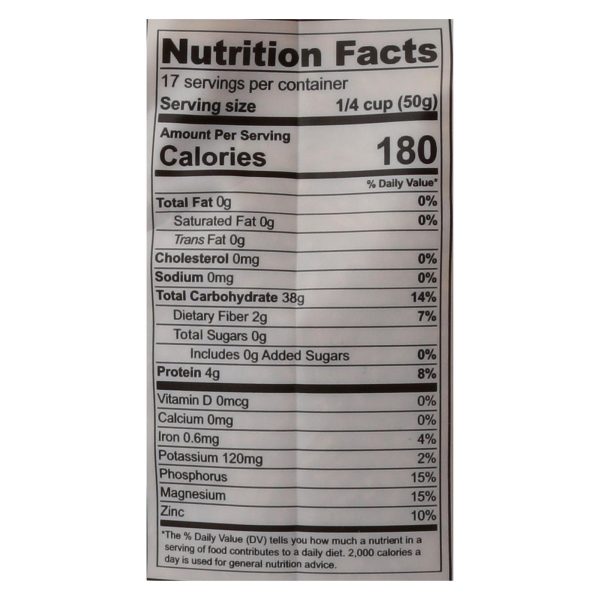 Lotus foods organic rice, brown jasmine is a natural, non-gmo whole grain. Free from any additives or other substances, lotus foods jasmine rice is pure and nutrient rich. With 50% less water and 90% less seed, lotus foods rice yields three times the amount of rice as other brands. This product is gluten-free, kosher and organic. Each bag of lotus foods organic rice, brown jasmine weighs 30 oz. With 17 servings per bag and 180 calories per serving. Store in a cool, dry place. See nutrition facts panel for allergens.