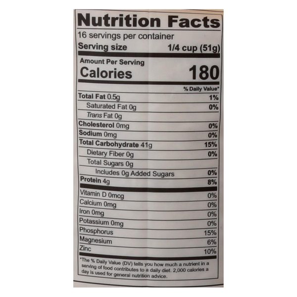 Lotus foods organic basmati rice, dehraduni is a natural, non-gmo whole grain. Free from any additives or other substances, this rice is pure and nutrient rich. With 50% less water and 90% less seed, lotus foods’ rice yields three times the amount of rice as other brands. This product is gluten-free, kosher and organic. Each bag of lotus foods organic basmati rice, dehraduni weighs 30 oz. With 16 servings per bag and 180 calories per serving. Store in a cool, dry place. See nutrition facts panel for allergens.