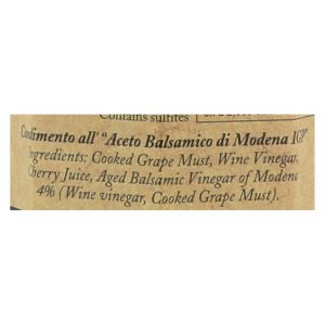 ingredients : cooked grape must;wine vinegar;cherry juice 4%;aged balsalmic vinegar of modena 4% (wine vinegar, cooked grape must)