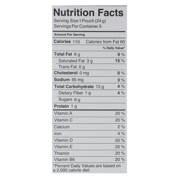 Usda organic. Organic. Certified organic by pro-cert. Nut free. What makes this a madegood product? nut free: made in a dedicated peanut and tree nut free facility. Contains nutrients from vegetables. Usda organic: certified organic. Certified gluten-free. Certified gluten by gfco. Made with whole grain. Certified vegan. Vegan.org. Non gmo project verified. Nongmoproject.org. Free from nuts & safe for schools. Nutrients from vegetables. Allergy friendly. Dedicated facility free from the following common allergens: peanuts; tree nuts; wheat & gluten; soy; dairy; egg; sesame; fish & shellfish. Www.madegoodfoods.com. Fsc: recycled – packaging made from recycled material. Recyclable. Product of canada.