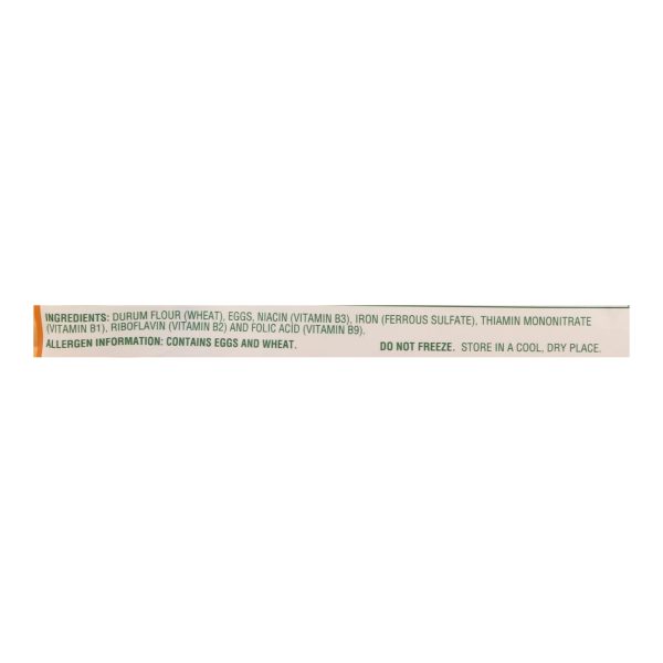 ingredients : durum flour;wheat;eggs;niacin;vitamin b3;iron;ferrous sulfate;thiamin mononitrate;vitamin b1;riboflavin;vitamin b2;and folic acid;vitamin b9
