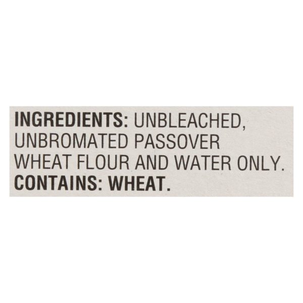 ingredients : unbleached;unbromated passover wheat flour and water only