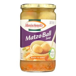 Manischewitz matzo ball soup is made from light, tasty and fluffy matzo balls, hearty vegetables and just the right blend of seasonings. Our vegetarian soup is an excellent source of vitamin a and contains no trans fat. Each 24 oz. Jar of matzo ball soup is certified kosher for passover and all year round.