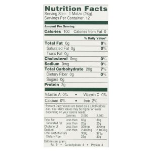 No artificial flavors, colors or preservatives. Sodium free. Non gmo project verified. Nongmoproject.org. Perfect for any recipe, made the old-fashioned way with just flour and water. Comfort food for the soul. Estd 1888. Satisfying crunch. Celebrating over 130 years crafting kosher foods. The world’s original ancient cracker, simply made with just flour and water. At manischewitz, we carried the torch forward in bringing matzos to the masses with our world-famous square matzos tradition since 1888. Some things are better unchanged and simple, a company like-matzos the world’s original ancient cracker. Circa 1888. Circa 1985. Matzo lets your toppings do the talking! the simple, clean flavor and satisfying snap of matzos makes it a versatile backdrop for dips, spreads and creative recipes. Matzo lets your toppings do the talking! manischewitz matzos are made with simple ingredients. Their crispy texture and light flavor make them perfect with any topping or spread. Manischewitz.com. Facebook. Pinterest. (at)manischewitz. Twitter. Instagram. (at)manischewitzco. Visit us at: manischewitz.com. Enjoy manischewitz thin tea matzos and other delicious manischewitz products that are available all year round: matzo ball & soup mix; potato pancake mix; gluten free noodles; tam tam crackers; soups & broths. Printed on recycled paperboard. Product of israel.
