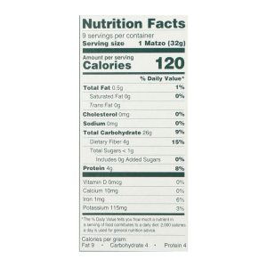 Quality since 1888. Not for passover. L’chaim! to life! all natural. No sodium. Low fat. Healthy body. Healthy spirit. This product is sold by weight, not volume. Some settling may have occurred during handling, but it contains the full weight. Hot tip: warm your favorite matzo in the oven/toaster oven and savor that crispy fresh from the bakery taste. Over 120 years. Thanks to your support, we have become the leading provider of kosher foods and america’s number one baker of matzo. We continue our commitment to deliver an assortment of foods that meet the highest quality of kosher standards. We would like you to try some of our other delicious food items that are available all year round. For product information, recipes and more, visit us at: www.manischewitz.com. Printed with soy ink. Printed on recycled cardboard. Www.manischewitz.com. Yoshon flour. Challah is taken. This product is lactose free and vegetarian. Product of usa.