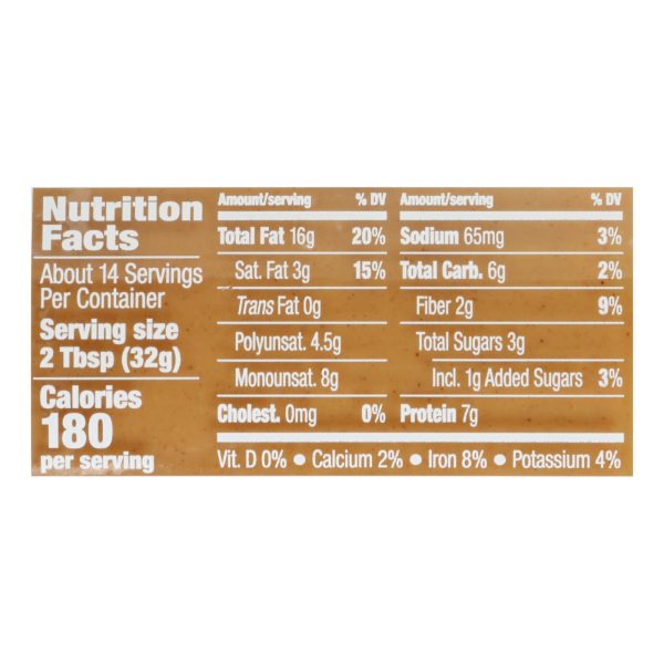 Maranatha creamy no-stir peanut butter with salt is a delightfully creamy natural nut butter. With natural peanuts as the primary ingredient, maranatha creamy no-stir peanut butter with salt is free from unnatural and unnecessary additives, ensuring that the natural flavor of the peanuts remains uncompromised. This product is kosher and gluten free. Each jar of maranatha creamy no-stir peanut butter with salt contains 16 oz. Of nut butter with 14 servings per jar and 180 calories per serving. Stir and refrigerate after opening. See nutrition facts panel for allergens.