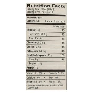 Martinelli’s organic apple juice is a pure apple juice made from natural ingredients. Squeezed from american-grown apples, martinelli’s organic apple juice is free from unnatural and unnecessary additives or ingredients, allowing the natural flavor of the apple juice to remain uncompromised. This product is kosher and 100% juice. Each bottle of martinelli’s organic apple juice contains 64 fl. Oz. Of apple juice with 8 servings per bottle and 140 calories per serving. Refrigerate after opening. See nutrition facts panel for allergens.