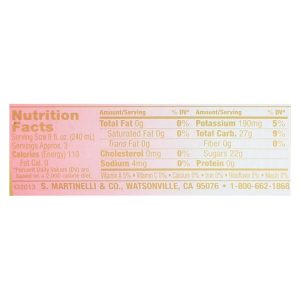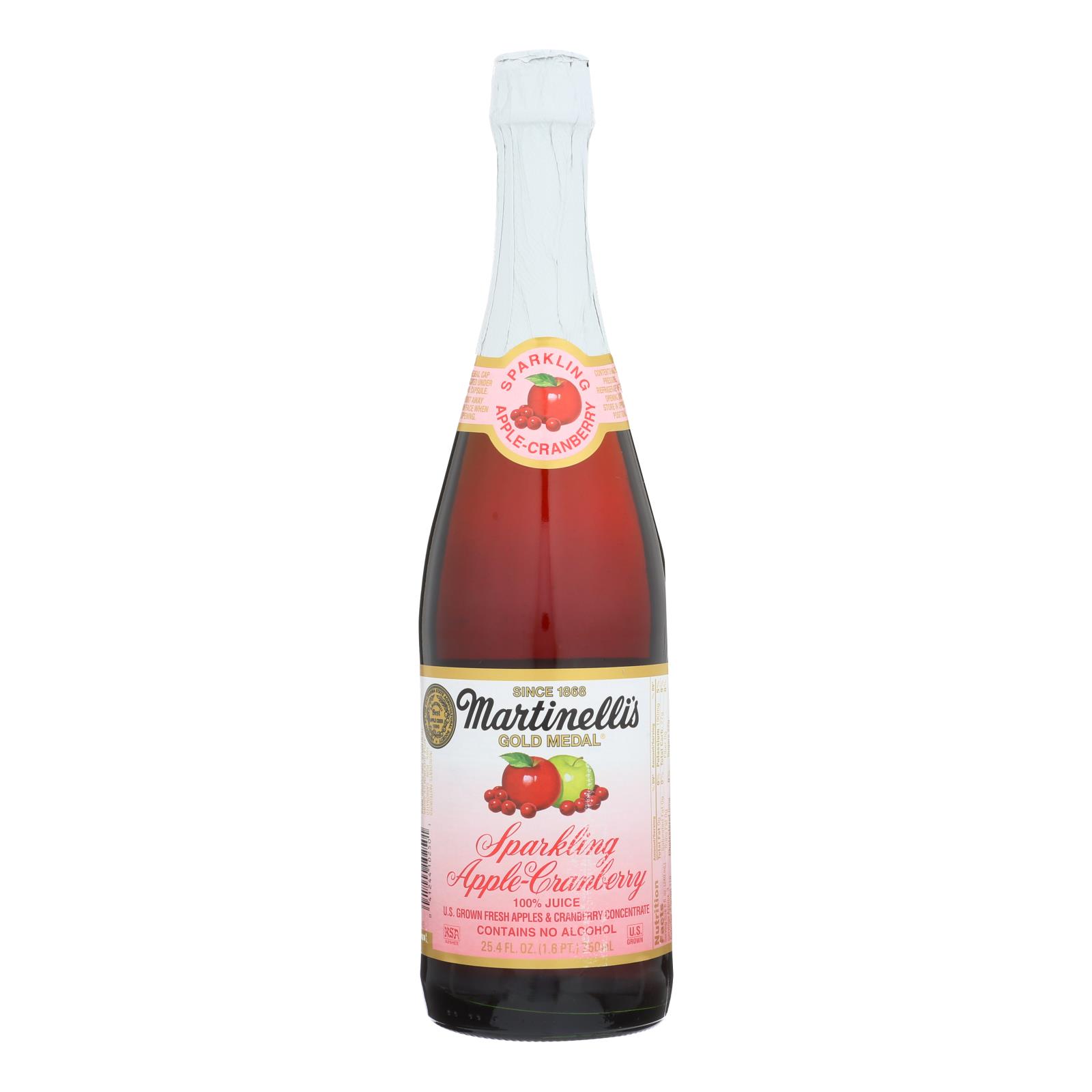Martinelli’s sparkling apple cranberry juice is an elegant beverage made from natural ingredients. Squeezed from american-grown apples, martinelli’s sparkling apple cranberry juice is free from unnatural and unnecessary additives or ingredients, allowing the natural flavor of the apple juice to remain uncompromised. This product is kosher and does not contain alcohol. Each bottle of martinelli’s sparkling apple cranberry juice contains 25.4 fl. Oz. Of apple juice with 3 servings per bottle and 110 calories per serving. Refrigerate after opening. See nutrition facts panel for allergens.