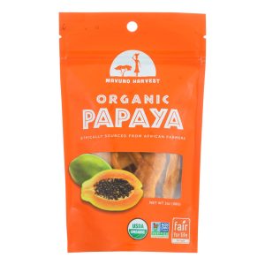 Mavuno harvest organic dried fruit is dried papaya ethically sourced from african farmers. Each 2 oz. Bag contains about 1 ½ servings of non-gmo, naturally sweet papaya grown in africa. Our dried fruit is pennsylvania certified organic and social and fair trade certified by imo. Mavuno harvest was started by a peace corps volunteer to help small-scale rural african farmers avoid waste and sell 100% of their harvest. Feed your body, feed the world.