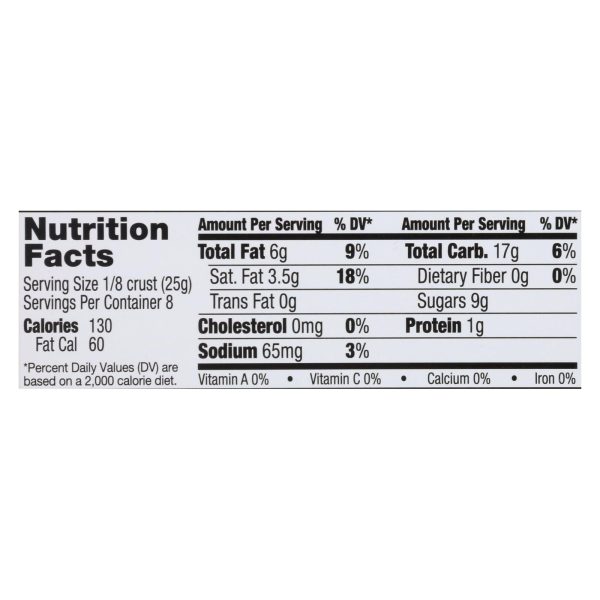 9 inch size. Delicious pie recipes on back! perfect for those with gluten sensitivity. Certified gluten-free. Peanut free. Panosbrands.com. Product of canada.