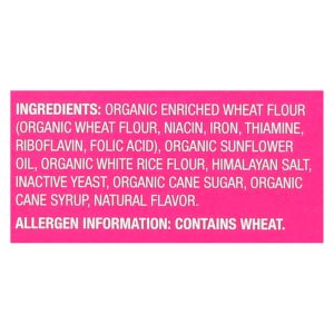 ingredients : organic enriched wheat flour;organic wheat flour;niacin;iron;thiamine;riboflavin;folic acid;organic sunflower oil;organic white rice flour;himalayan salt;inactive yeast;organic cane sugar;organic cane syrup;natural flavor