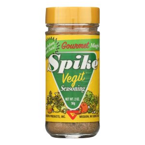 Modern products vegit magic spike is a spice blend that features and herbal bouquet of oregano, sweet basil, marjoram, rosemary and thyme. Our blend also features flavors like toasted onion, dill, white pepper and celery. This low-sodium seasoning is free of chemical free flowing agents and added msg. This container holds 2 oz. Of vegit magic seasoning.