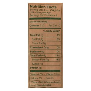 Montebello organic orecchiette pasta is imported from italy, created using old world techniques for a distinctive flavor and texture. Our 16 oz. Bag contains usda organic certified, non-gmo pasta made from organic durum wheat semolina. Each 2 oz. Serving contains 210 calories and 2 g. Of dietary fiber.