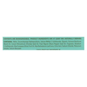 Mrs. Meyer’s clean day basil hand soap refill is made with plant-derived ingredients, natural essential oils, aloe vera extract and olive oil. Our biodegradable soap cleans hands without parabens, phthalates, or artificial colors. Each hand soap refill comes in one 33 oz. Bottle and is certified cruelty-free.