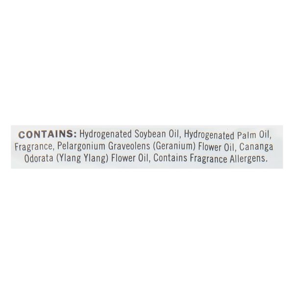 ingredients : hydrogenated soybean oil;hydrogenated palm oil;fragrance;pelargonium graveolens (geranium) flower oil;cananga odorata (ylang ylang) flower oil