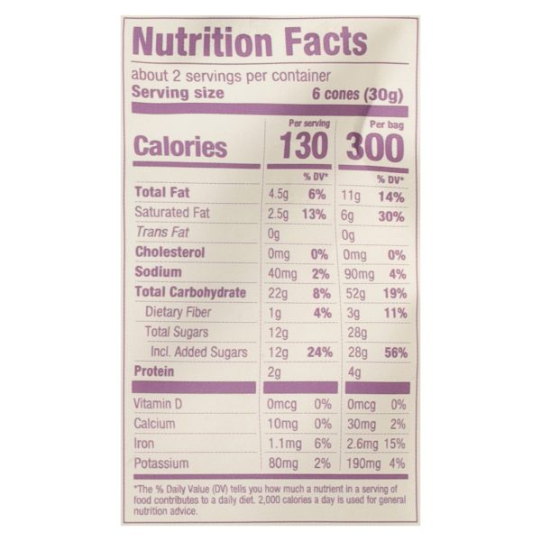 ingredients : cone (wheat flour, sugar, coconut fat, sunflower lecithin, caramelized sugar syrup, salt);dark chocolate (cane sugar, unsweetened chocolate, cocoa butter, milk fat, soy lecithin, vanilla extract)