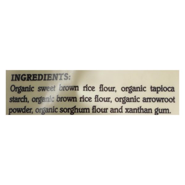 ingredients : organic sweet brown rice flour;organic tapioca starch;organic brown rice flour;organic arrowroot powder;organic sorghum flour and xanthan gum