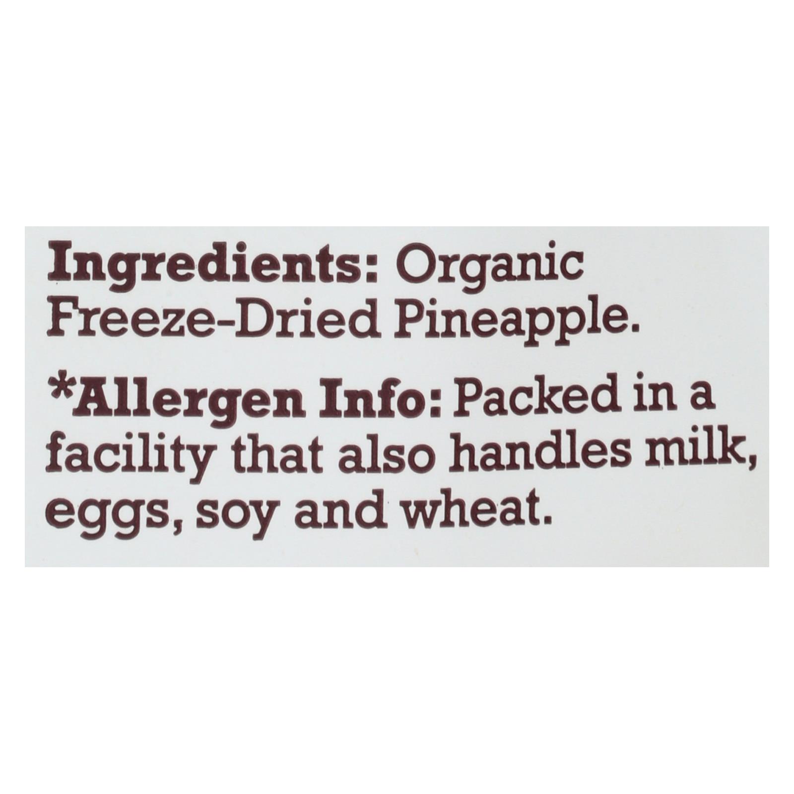 Enjoy natierra organic freeze dried pineapple, a healthy and portable snack that is free of all chemicals and preservatives, whenever temptation strikes. Our organic freeze dried pineapples are a delicious treat that you and your family will enjoy. Each 1.5 oz. Bag is full of vitamins and minerals that you will feel good about giving your loved ones. You can enjoy this treat at home or on the go.