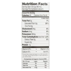 Native forest light coconut milk lends rich and creamy goodness to soups, curries, sauces, desserts and beverages. We press fresh certified usda organic coconuts to yield an oil-rich extract that is mixed with filtered water to create our delicious unsweetened coconut milk. Each 13.5 oz. Can of coconut milk is non-gmo project verified.