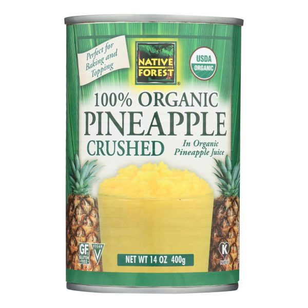 Native forest 100% organic crushed pineapple adds a tropical touch to your side dishes, desserts and baked goods. This 14 oz. Can features all-natural crushed pineapples soaked in organic pineapple juice so the fruity flavor satisfies your sweet tooth from the first bite. Add this organic pineapple to smoothies or use as a topping for your next dessert.