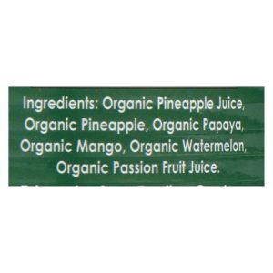 Native forest tropical fruit salad is made up of hand-selected certified usda organic fruits. We cut pineapple, mango, papaya and watermelon into bite-sized pieces and pack them in pineapple and passion fruit juices at the peak of freshness. Our tropical fruit salad comes in a 14 oz. Can and is perfect for dessert and smoothies.