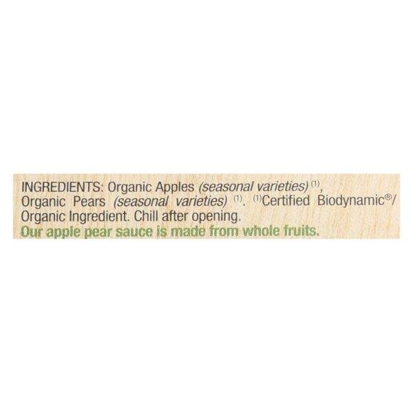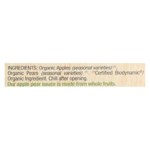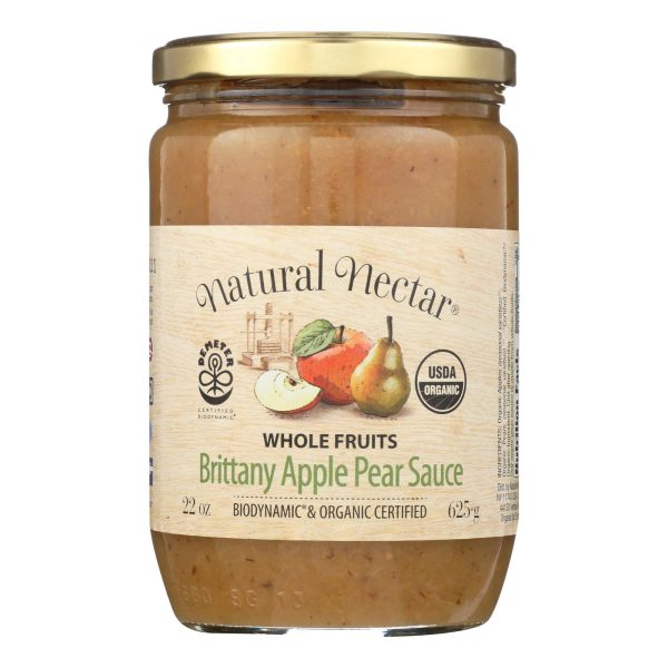 Natural nectar brittany apple & pear sauce is made with organic seasonal apples and organic seasonal pears. Each 22 oz. Jar of our sauce contains about five 60 calorie servings. Each serving is about 1/2 c. We use whole fruit to make our certified biodynamic and usda organic certified apple & pear sauce.