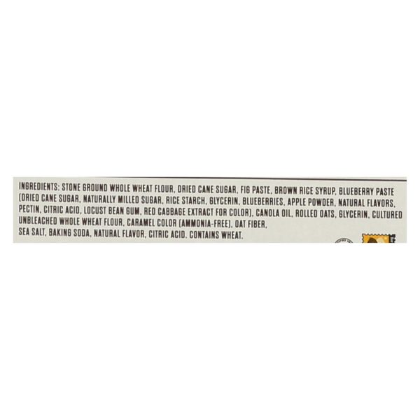 ingredients : whole wheat flour;cane sugar;fig paste;brown rice syrup;blueberry jam (cane sugar, naturally milled sugar, rice starch, glycerin, blueberries, apple powder, natural flavors, pectin, citric acid, locust bean gum);canola oil;whole grain oats;glycerin;fruit juice (for color);sea salt;natural flavor;citric acid;baking soda