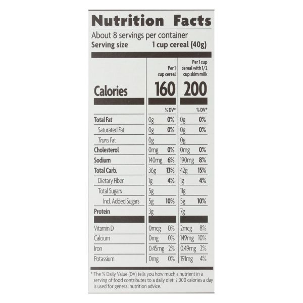 Nature’s path honey’d corn flakes cereal is a delicious gluten-free certified cereal made of wholesome corn and lightly sweetened with honey; it is entirely free of wheat. We create each 10.6 oz. Box of cereal using kosher ingredients that are non-gmo project verified and vegan-friendly, and we use usda organic certified grains. We do not use herbicides, pesticides, synthetic preservatives or additives, and even our packaging is sustainable. See nutrition facts panel for allergens.