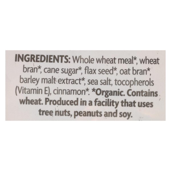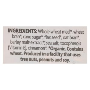 ingredients : whole wheat meal;wheat bran;cane sugar;flax seed;oat bran;barley malt extract;sea salt;tocopherols (vitamin e);cinnamon