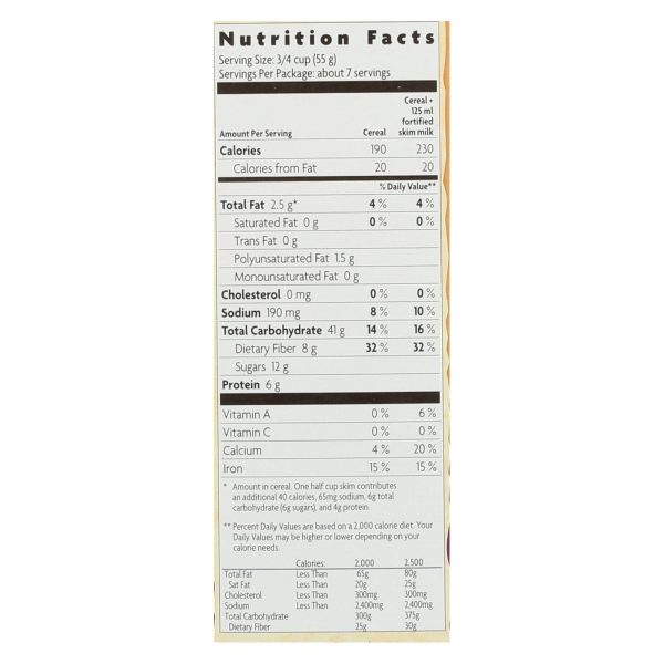 Nature’s path flax plus raisin bran has lightly-toasted multibran and is a good source of good fats and fiber from delicious omega-rich flax flakes. Our bran is usda organic certified and non-gmo project verified. Everything we make is created in a kitchen, not a lab. Foods made from whole grains have all the essential parts and naturally occurring nutrients of the entire grain seed. Our bran is free of artificial additives and preservatives. Our bran has 8 g. Of fiber, 6 g. Of protein and 14 g. Of whole grains per serving. See nutrition facts panel for allergens. Includes one 14 oz. Box of flax plus raisin bran. At nature’s path, we’ve always been organic. We’ve been involved in the organic movement since 1967, and now 3 generations are represented in our independent, family run company.
