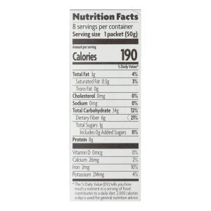 Nature’s path hot oatmeal, original flavor, is made with the best organic ingredients and tastes great. Ready in minutes, this hot cereal blend is perfect for breakfast. It provides 50 g. Of whole grains, 6 g. Of fiber and 8 g. Of protein in every serving, and no salt was added. Our hot oatmeal is made with kosher ingredients that are gmo-free and vegan. See nutrition facts panel for allergens.