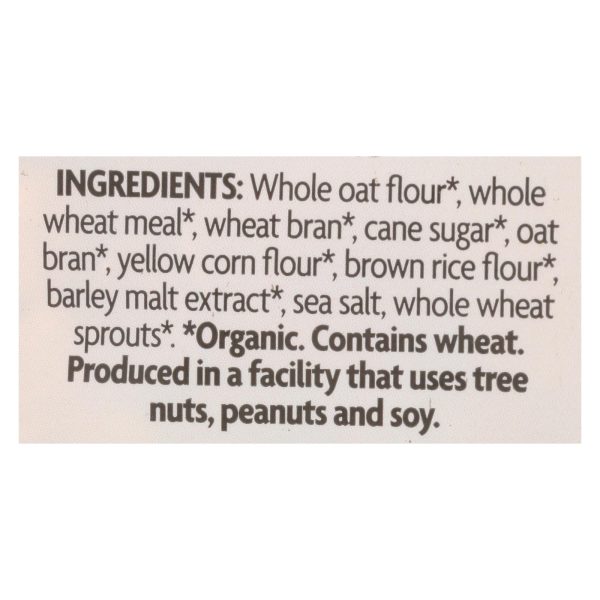 ingredients : whole oat flour;whole wheat meal;wheat bran;cane sugar;oat bran;yellow corn flour;brown rice flour;barley malt extract;sea salt;whole wheat sprouts