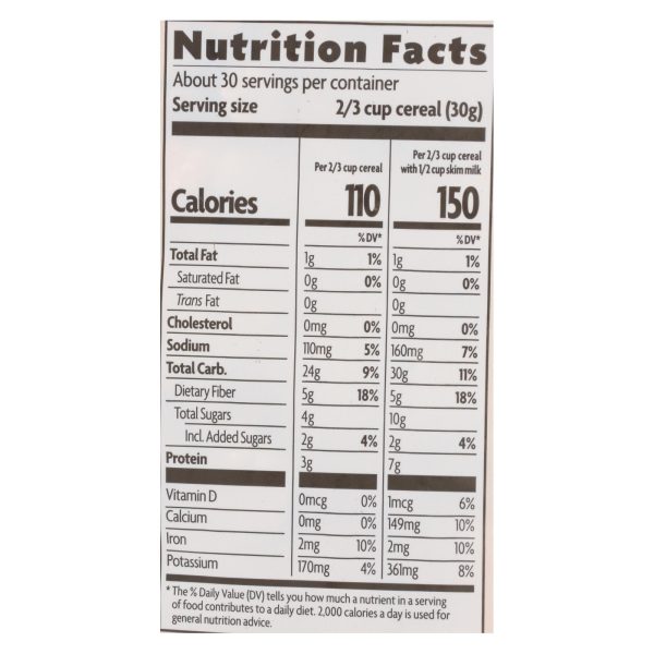Nature’s path cereal multigrain oat bran is a gluten-free certified cereal made of oat bran and wheat bran. We create our cereal using kosher, non-gmo project verified and usda organic certified grains and it is entirely free of wheat. The product includes one 32 oz. Bag. See nutrition facts panel for allergens.