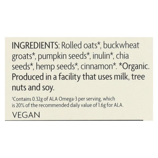 ingredients : rolled oats;buckwheat groats;pumpkin seeds;inulin;chia seeds;hemp seeds;cinnamon
