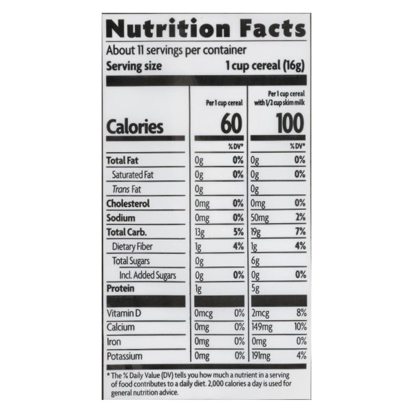 Nature’s path puff rice cereal is made from whole-grain brown rice that is sodium free, has no added sugar and is kosher and vegan. It is usda organic certified, grown without chemical herbicides and pesticides and there are never synthetic preservatives or additives. The product includes one 6 oz. Bag. See nutrition facts panel for allergens.