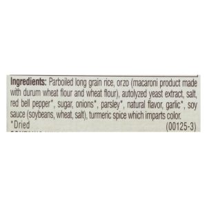 ingredients : rice;wheat flour;durum wheat flour;autolyzed yeast extract;salt;red bell pepper;sugar;onions;parsley;natural flavor;garlic;soy sauce;soybeans;wheat;turmeric;color