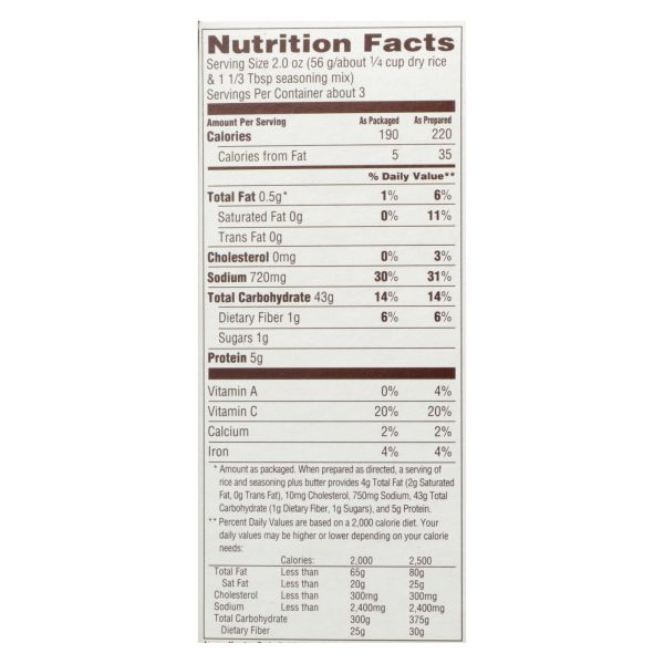 Chicken flavor, with other natural flavors. Per serving: 190 calories; 0 g sat fat (0% dv); 720 mg sodium (30% dv); 1 g sugars. For recipe nutritional information, visit our website at www.neareast.com. More recipes! for product information and recipes go to www.neareast.com or scan. For questions or comments, call 1-800-822-7423. Please have package available when calling. This package is sold by weight, not by volume. Contents settle during shipping and handling. Please recycle this carton.