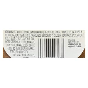 ingredients : vegetable oil;soybean oil and/or canola oil;water;distilled vinegar;romano cheese;pasteurized milk;cheese cultures;salt;enzymes;extra virgin olive oil;contains 2% or less of: sugar;garlic;spices;anchovies;barley malt extract;xanthan gum;hydrolyzed soybean protein;molasses;corn syrup;caramel color;onion;tamarind;natural flavor;paprika extract;for color