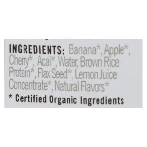 ingredients : banana;cherry;apple;water;brown rice protein;flax seeds;tapioca fiber;acai;lemon juice concentrate;natural flavors