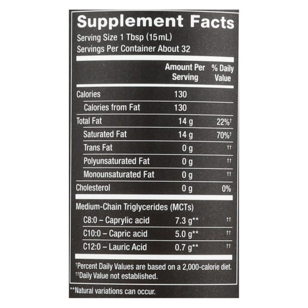 Nutiva organic mct oil is an oil concentrated with the medium-chain triglycerides, capric acid and caprylic acid. Medium-chain triglycerides, or mcts, are the types of saturated fatty acids typically found in coconuts. Using a usda certified organic process, we gently remove the fats from virgin coconut oil that remain solid at room temperature, leaving high levels of capric and caprylic acids. Unlike non-organic mct oil brands, there are no chemicals or filler oils used during this process, resulting in a clean, light coconut-flavored mct oil with no harsh aftertaste. Our mct oil is derived only from coconuts and has more mcts per serving than any other brand, making it an excellent option for athletes or those following a vegan, paleo, or plant-based diet. Includes one 16 oz. Bottle of nutiva organic mct oil. See nutrition facts panel for allergens. We say food doesn’t have to be a choice between the lesser of evils. Together, we can revolutionize the way the world eats.