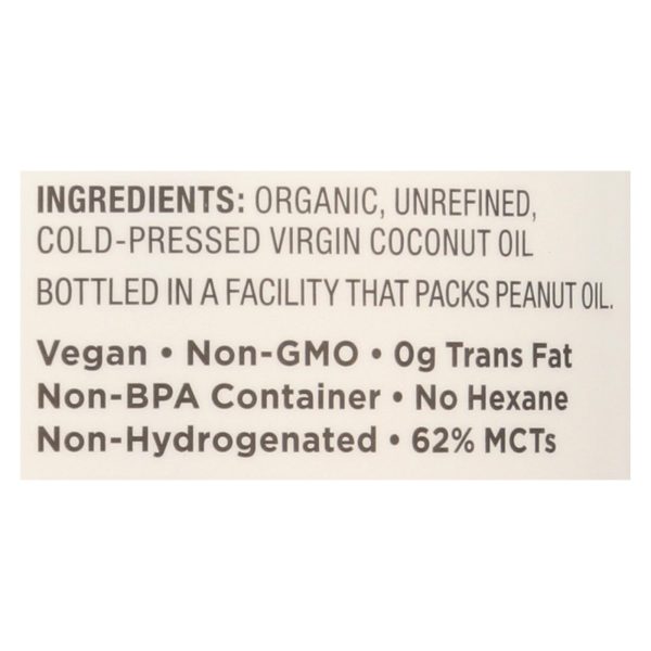 ingredients : organic;unrefined;cold-pressed virgin coconut oil