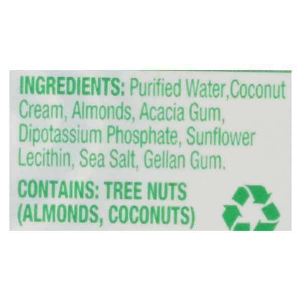 ingredients : purified water;coconut cream;almonds;acacia gum;dipotassium phosphate;sunflower lecithin;sea salt;gellan gum