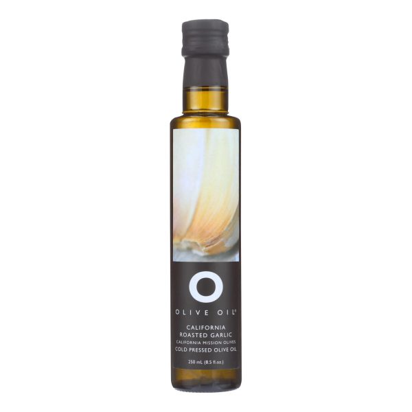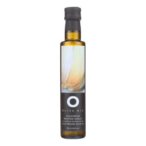 O olive oil roasted garlic olive oil is made with only fresh ingredients with no artificial flavors. This savory olive oil is delicious over oregano chicken, rosemary potatoes or on pasta with freshly grated parmesan. This olive oil is also amazing on grilled veggies, flatbread pizza, or simply dip crusty bread. Each bottle of o olive oil roasted garlic olive oil contains 250 ml. Of product.