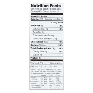 Old london crackers & crispbread, snacks melba sea salt is a natural and convenient snack option. Made with natural ingredients, these crackers are free of unnatural and unnecessary additives. This product is kosher friendly and contains real sea salt. Each box of old london crackers & crispbread, snacks melba sea salt weighs 5.25 oz. With five servings per container and 110 calories per serving.