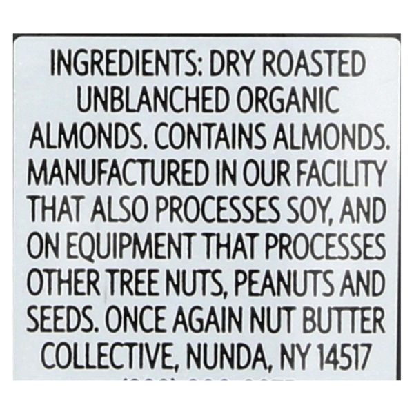 Once again finished single squeeze pack, organic sm almond butter is a delicious option for your next sandwich. This product uses only the finest natural almonds available, which are then dry-roasted and milled without additives. Once again finished single squeeze pack, organic sm almond butter comes packaged for your convenience in a recyclable jar for easy disposal and contains 1.15 oz. Of product.