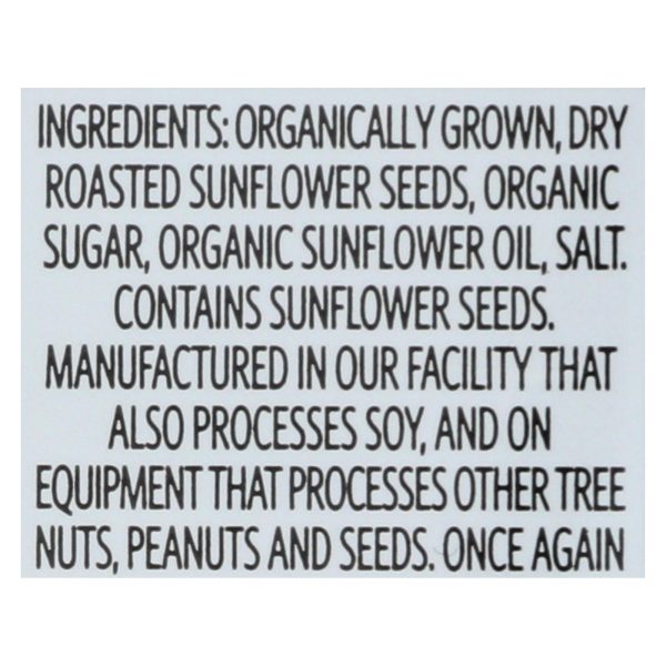 ingredients : organically grown;dry roasted sunflower seeds;organic sugar;organic sunflower oil;salt