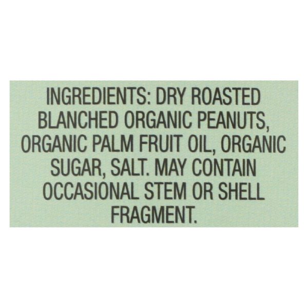 ingredients : dry roasted blanched organic peanuts;organic palm fruit oil;organic sugar;salt