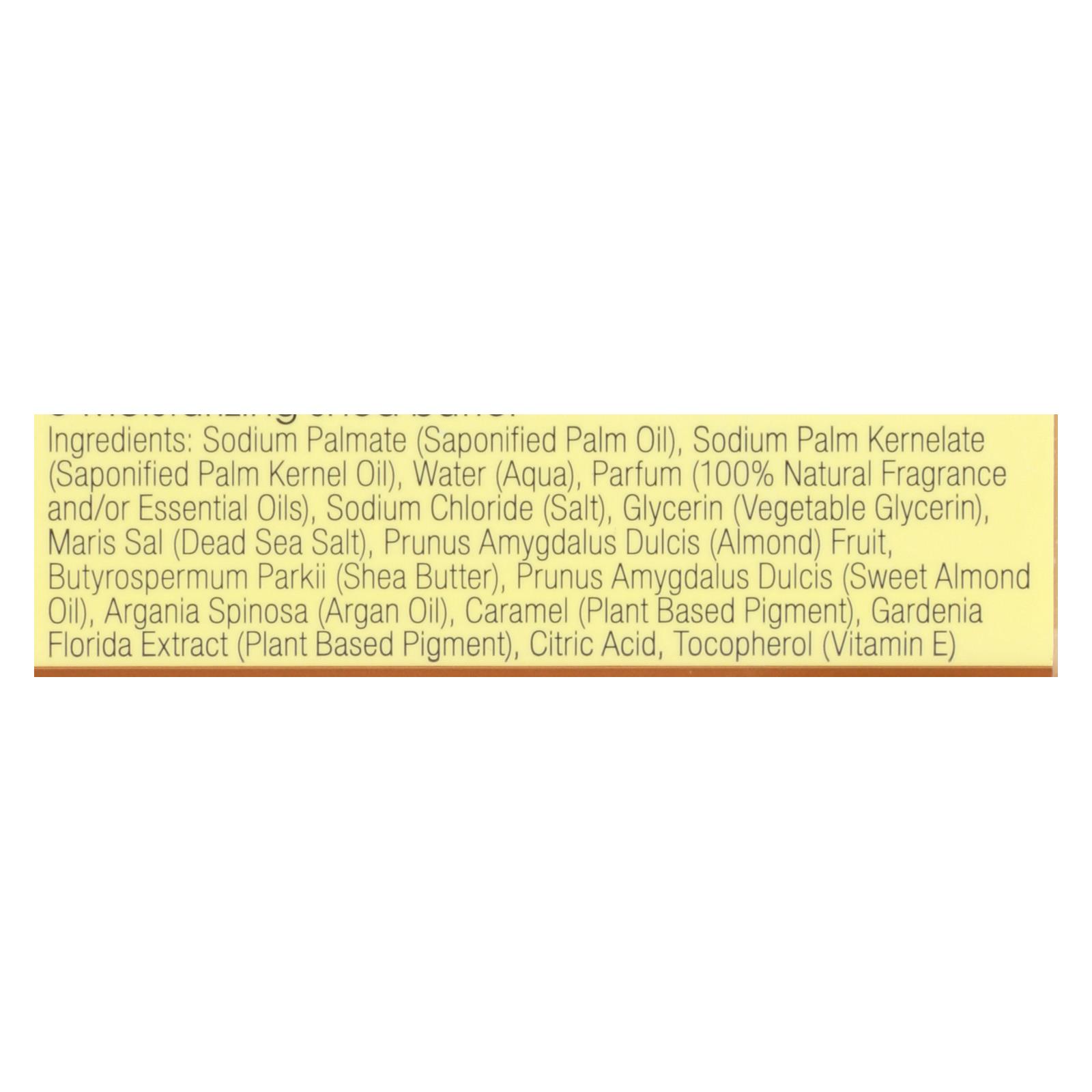 One with nature dead sea bar soap almond is a gentle yet powerful soap. Made with primarily with naturally derived ingredients, this soap is largely free of unnatural additives. This products contains moisturizing shea butter and argan oil. Each bar of one with nature dead sea bar soap almond weighs 7 oz.